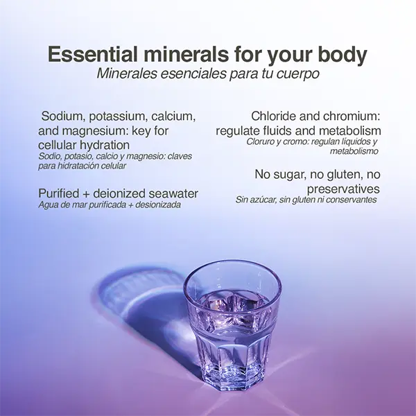 Contiene sodio, potasio, magnesio y calcio en la proporción ideal.
